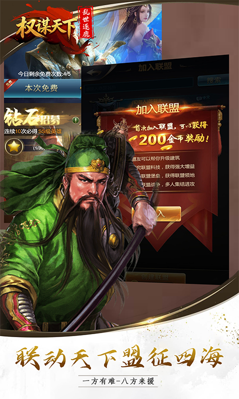 战争策略手游《权谋天下》以其丰富的策略玩法、精美的画面和多元的游戏系统,彻底改变了战争策略手游的传统玩法。游戏中,玩家可以体验到极具乐趣的养成模式,收集各种名城名将,并亲身感受古代战争的宏大场面。作为一位勤政君王,你将有机会展现自己的才能和智慧,在方寸之间创造一个辉煌的战争传奇。
